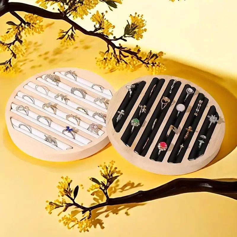 Wooden Round Ring Holder Display Stand Jewellery Storage Accessory Organizer