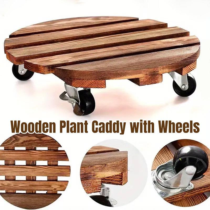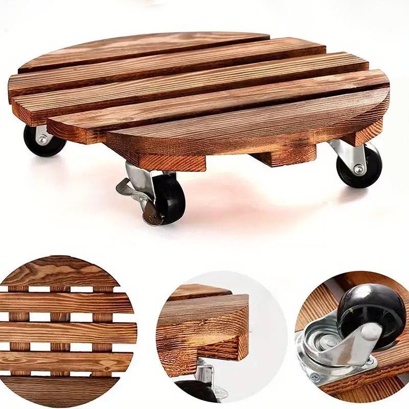 Wooden Round Universal Wheel Planter Base Tray Mobile Planter Stand for Garden