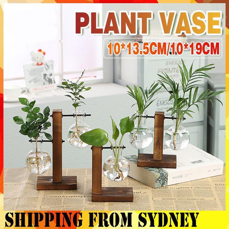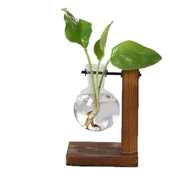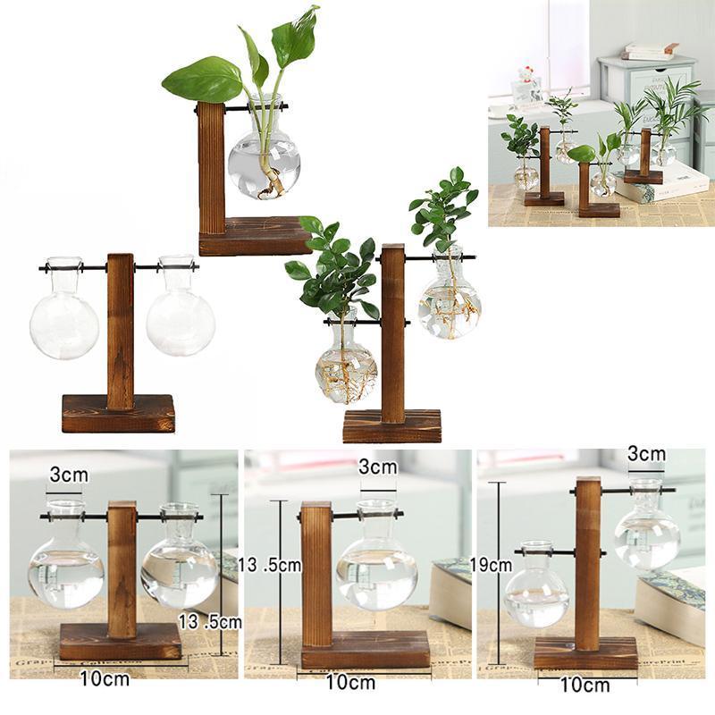 Wooden Stand Glass Flower Vase Hydroponic Hanging Plant Terrarium Container