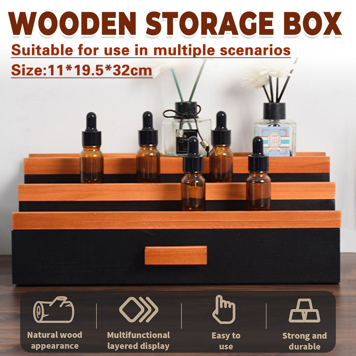 Wooden Storage Box Drawer Shelf Organizer Wooden Chest Home Decor Storage