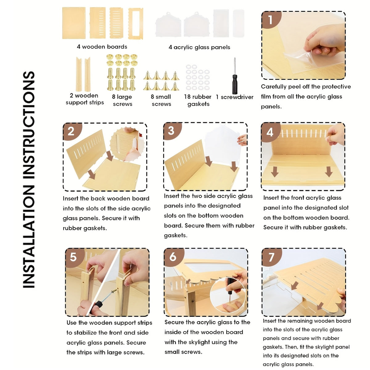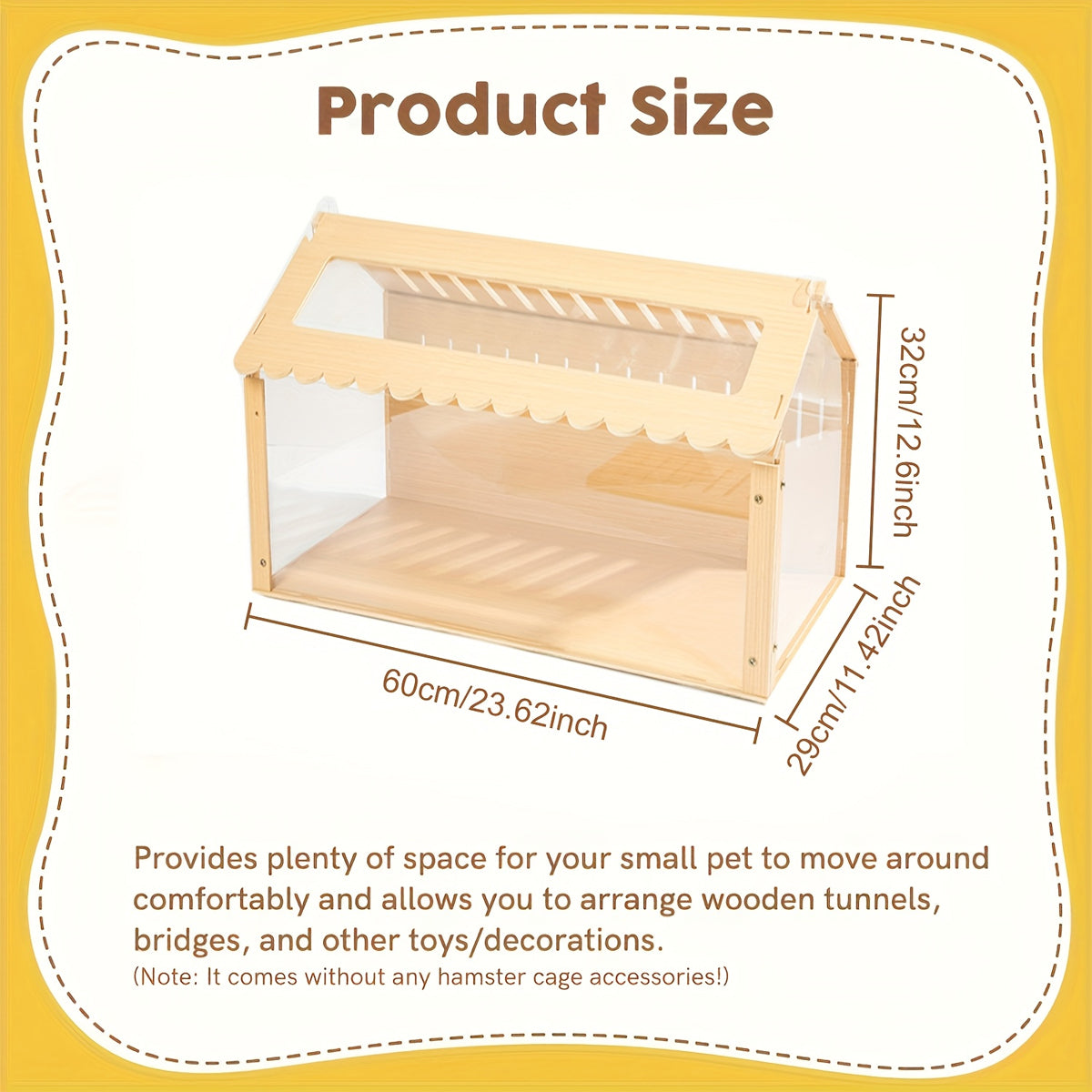 Wooden Transparent Hamster Pet Cage for Small Pet Habitat Home Use Easy Clean