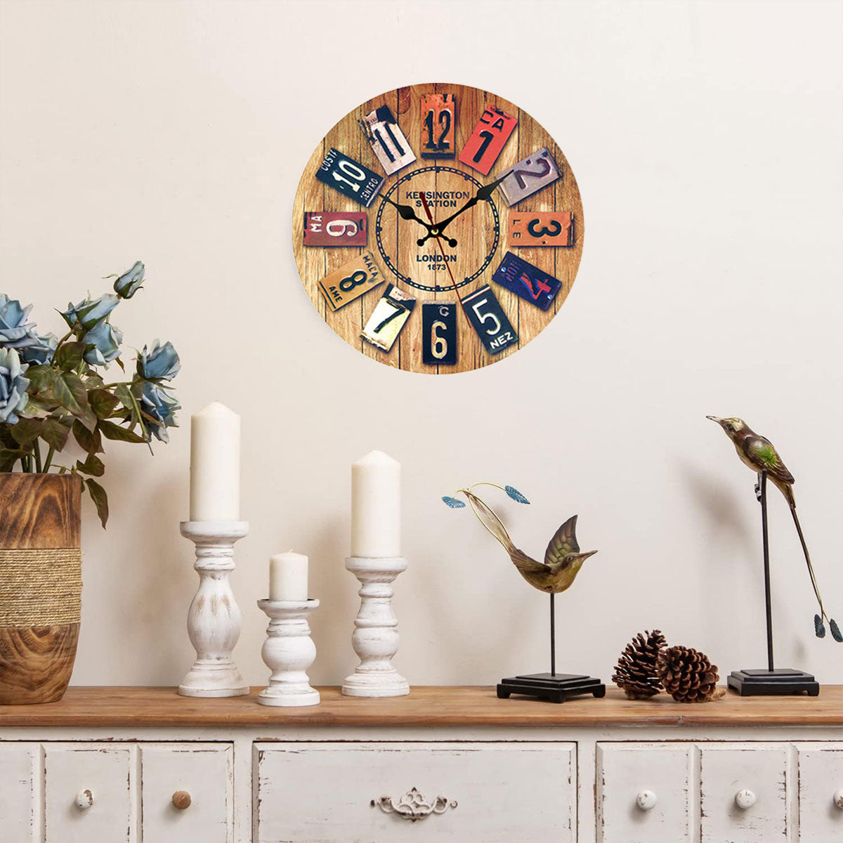 Wooden Wall Clock Round Shape Creative Design For Living Room Bedroom Decoration