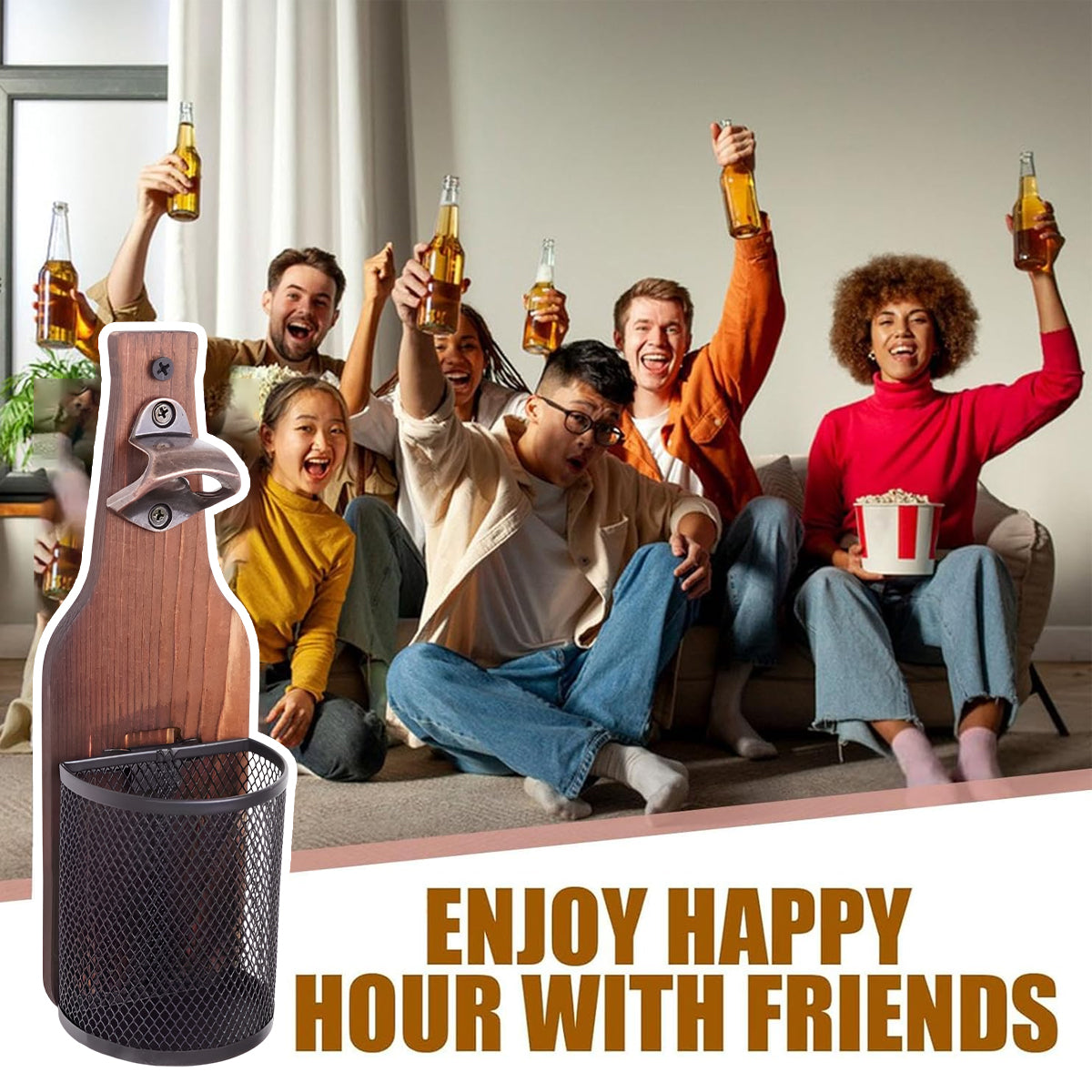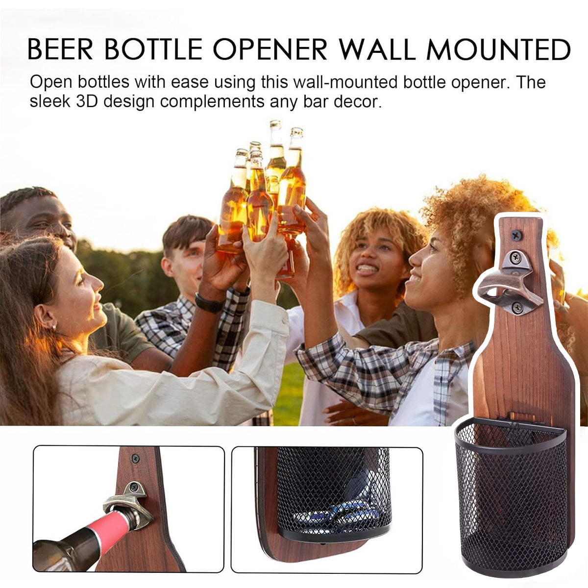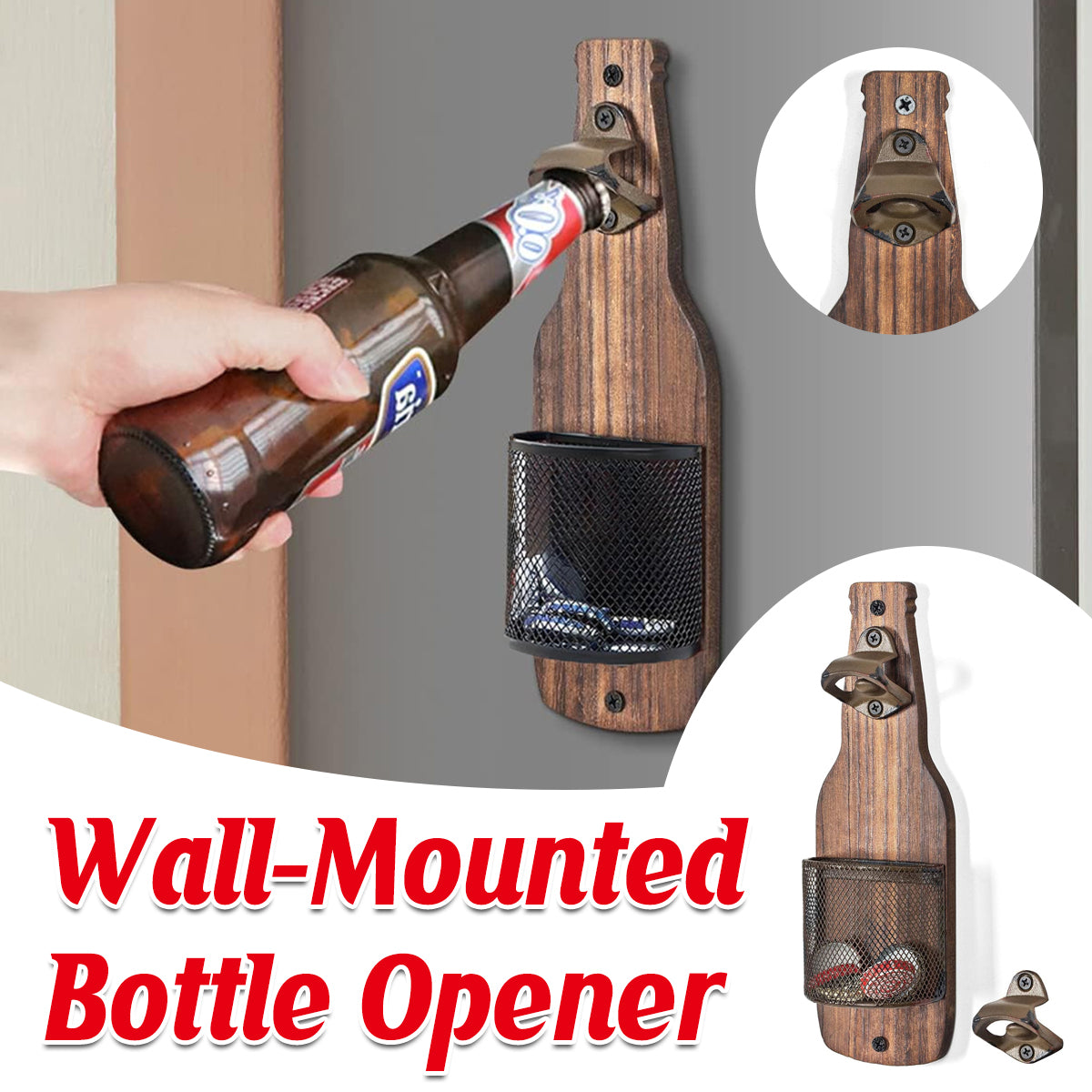 Wooden Wall Mounted Bottle Opener Solid Wood Beer Opener Rustic Home Bar Kitchen