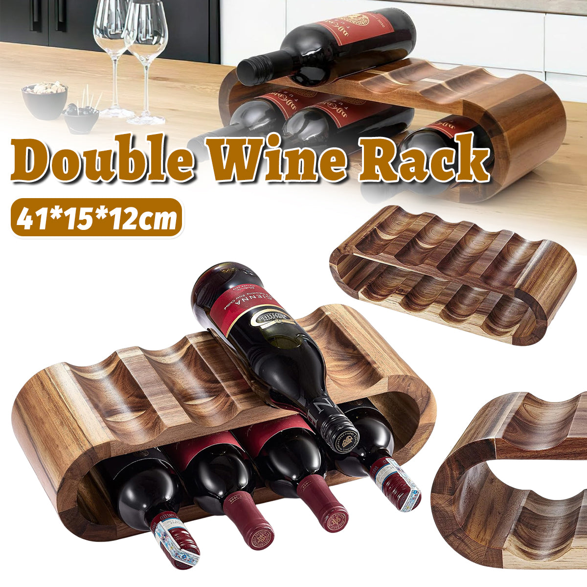 Wooden Wine Display Stand Double Layer Red Wine Holder Rack Table Bar Kitchen