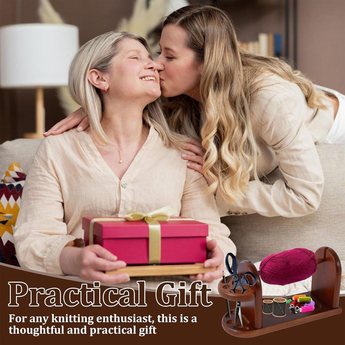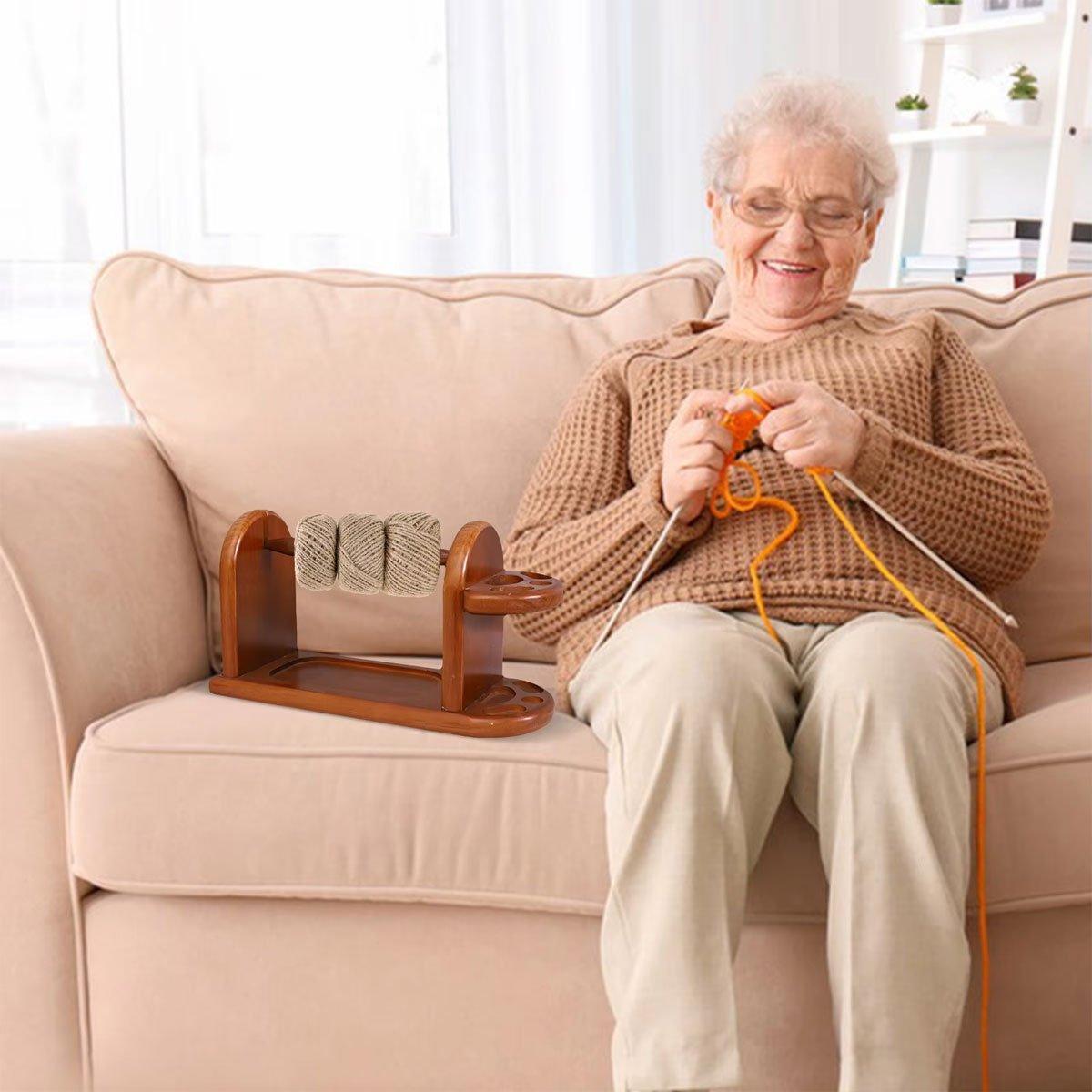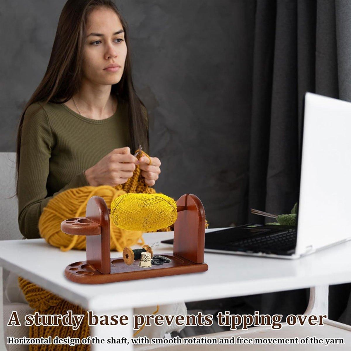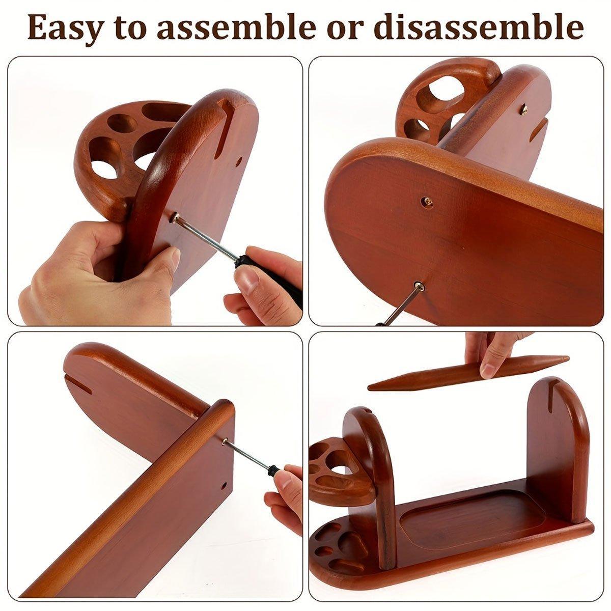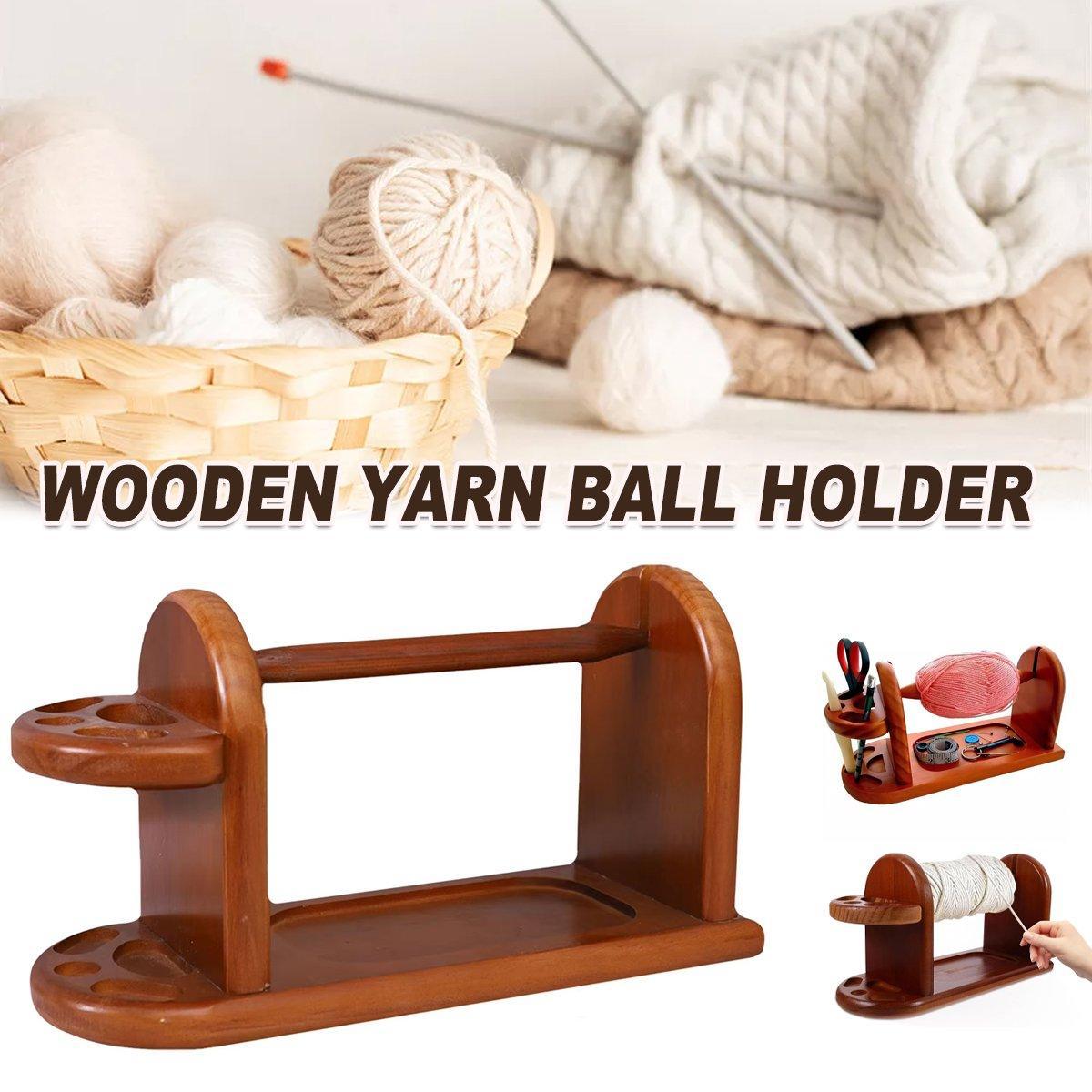 Wooden Yarn Spindle Holder with Scissors Organizer Solid Wood Knitting Tool Rack