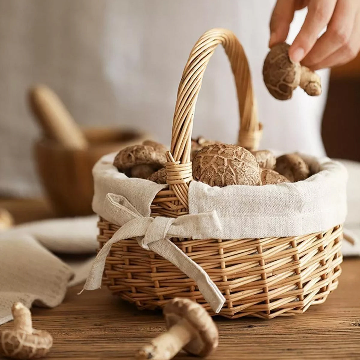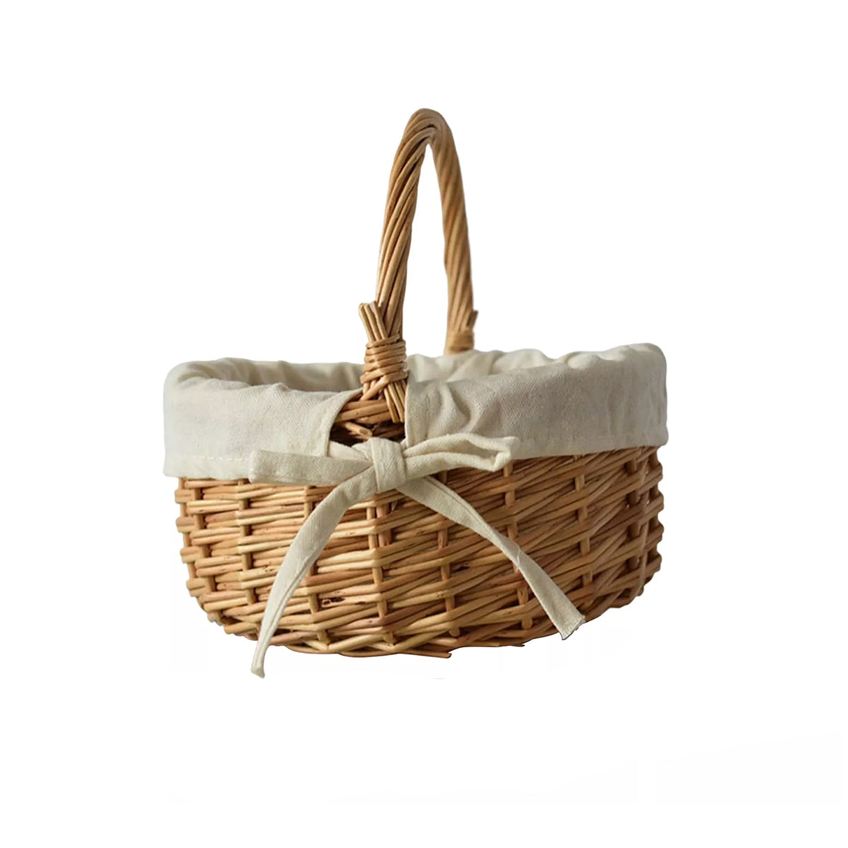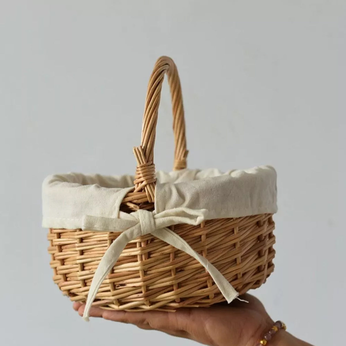 Woven Flower Basket Storage Basket Picnic Basket Mini Cloth Lined Flower Basket