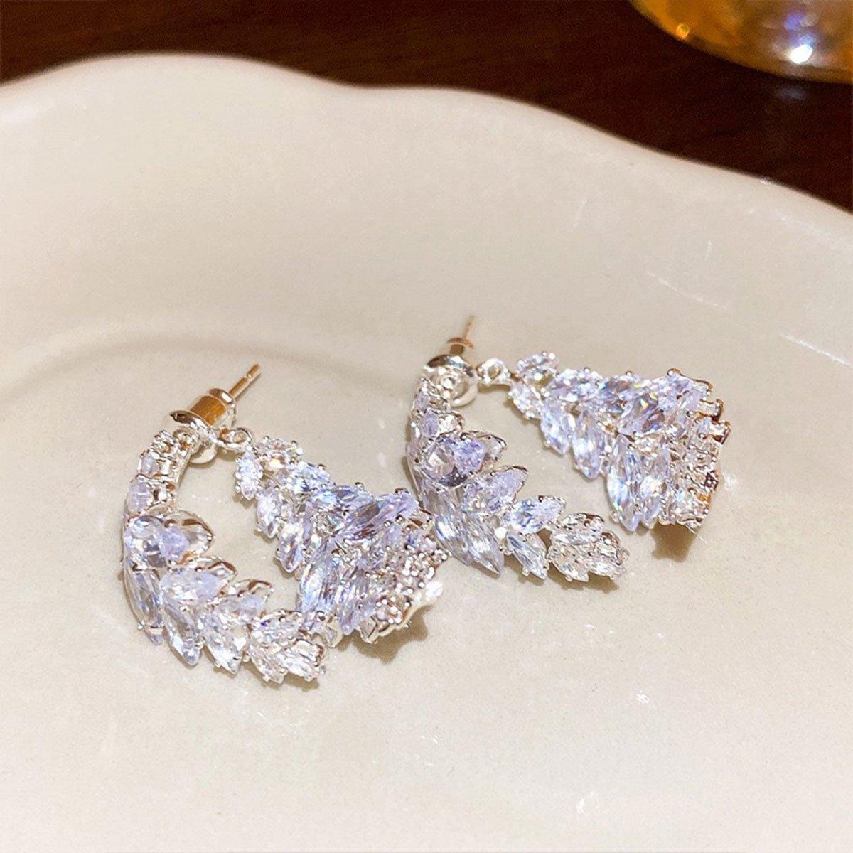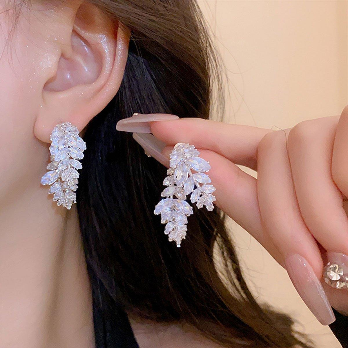 Zircon Leaves Earrings Before After Wear Design Fashion Jewellery Women